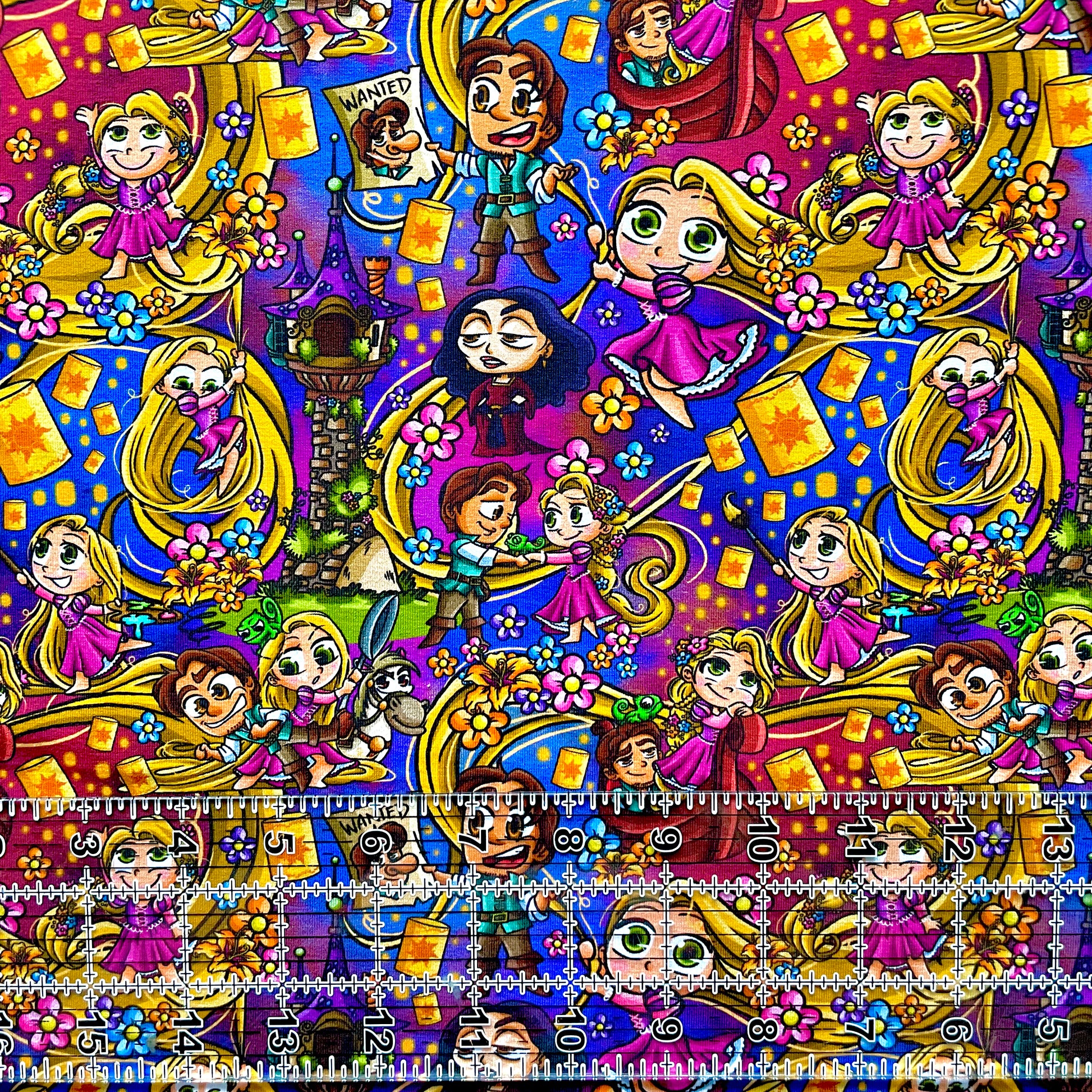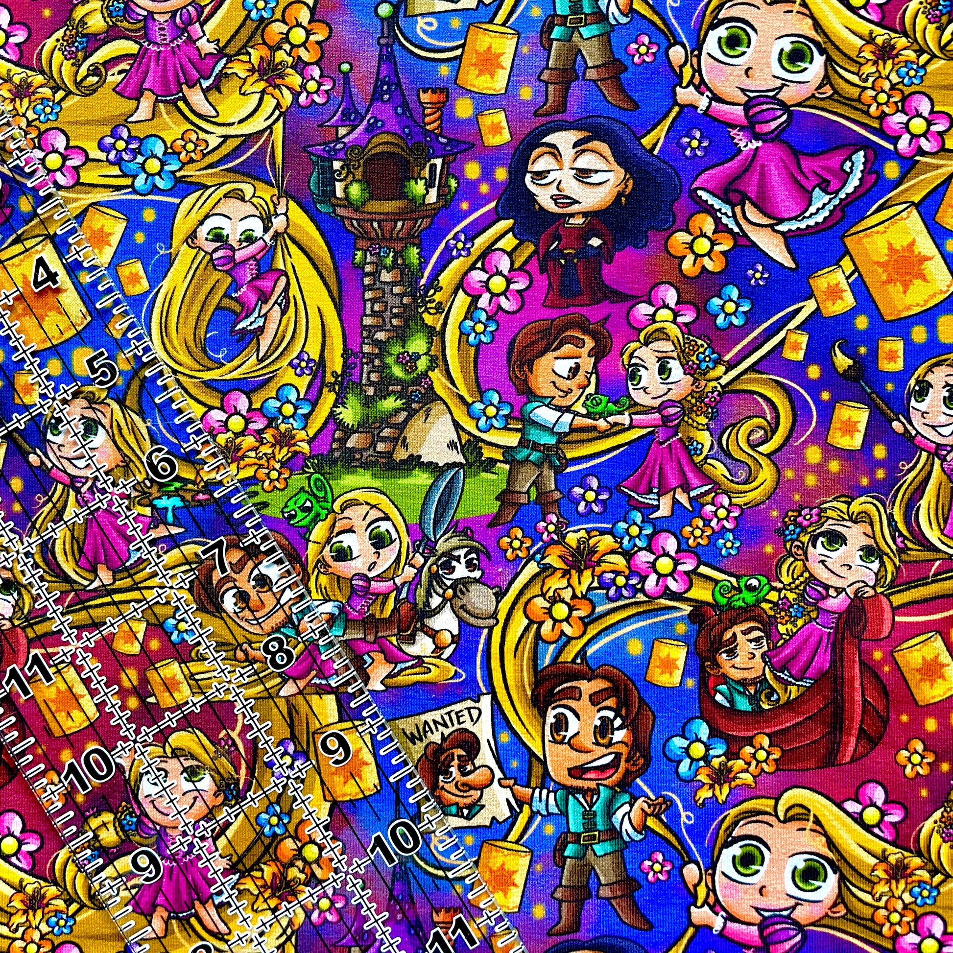 9x14 Tumbler Cut, Custom Fabric, CottonSpandex, High Quality, Mask Cut, Tumbler Fabric, Disney, Cartoons, Princess, Rapunzel, Golden Hair, Toon