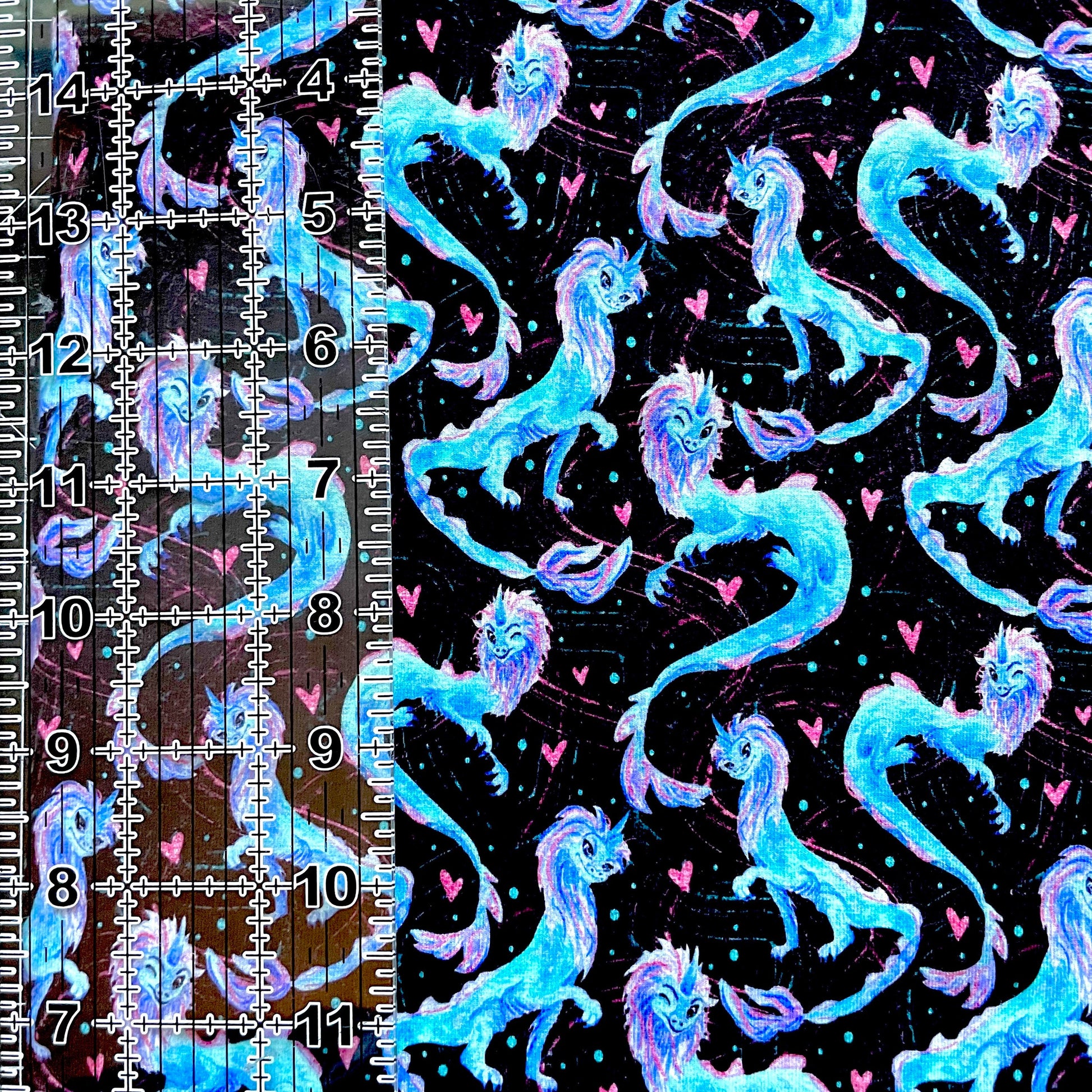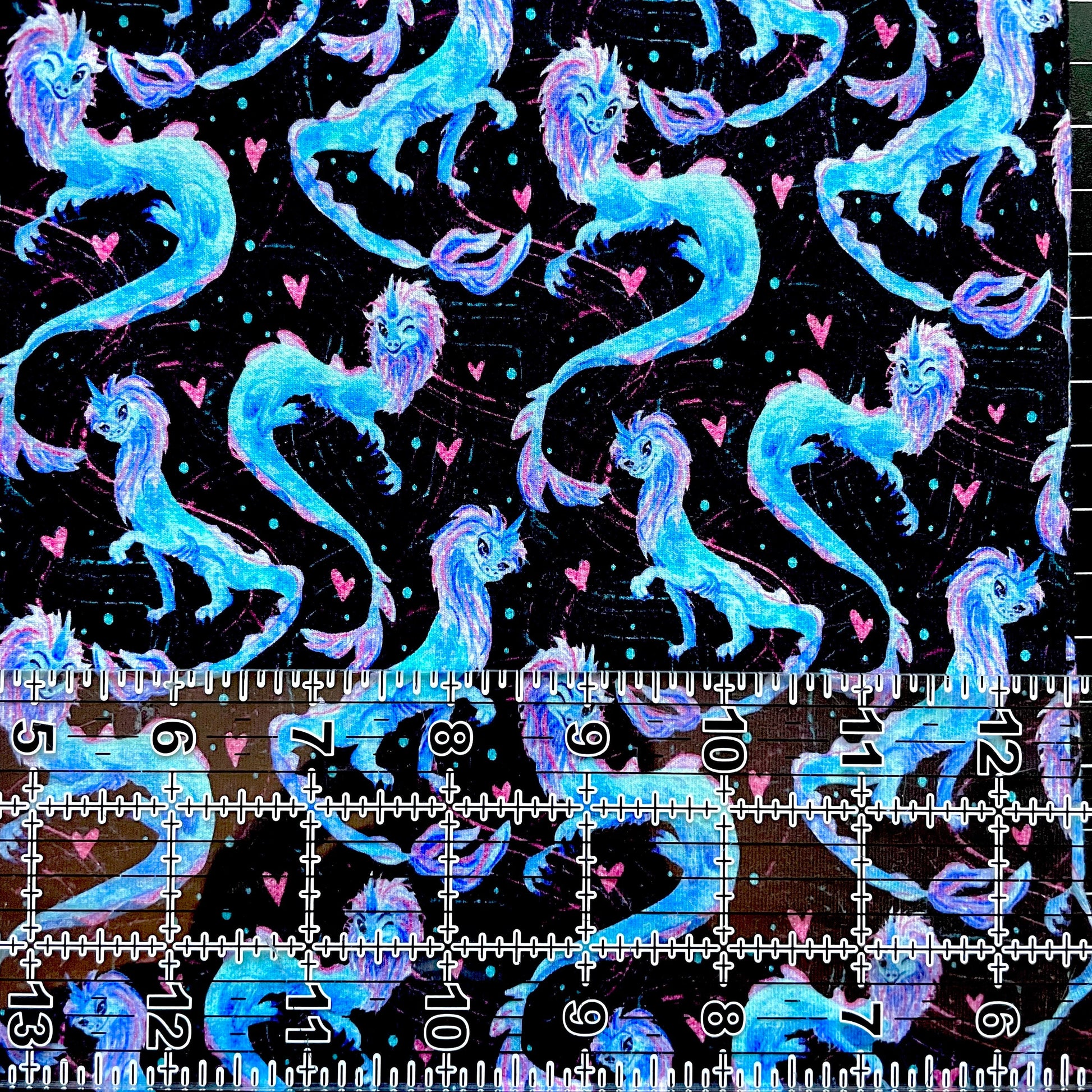 9x14 Tumbler Cut, Custom Fabric, CottonSpandex, High Quality, Mask Cut, Tumbler Fabric, Disney, Dragon, Cute, Small Scale, Black
