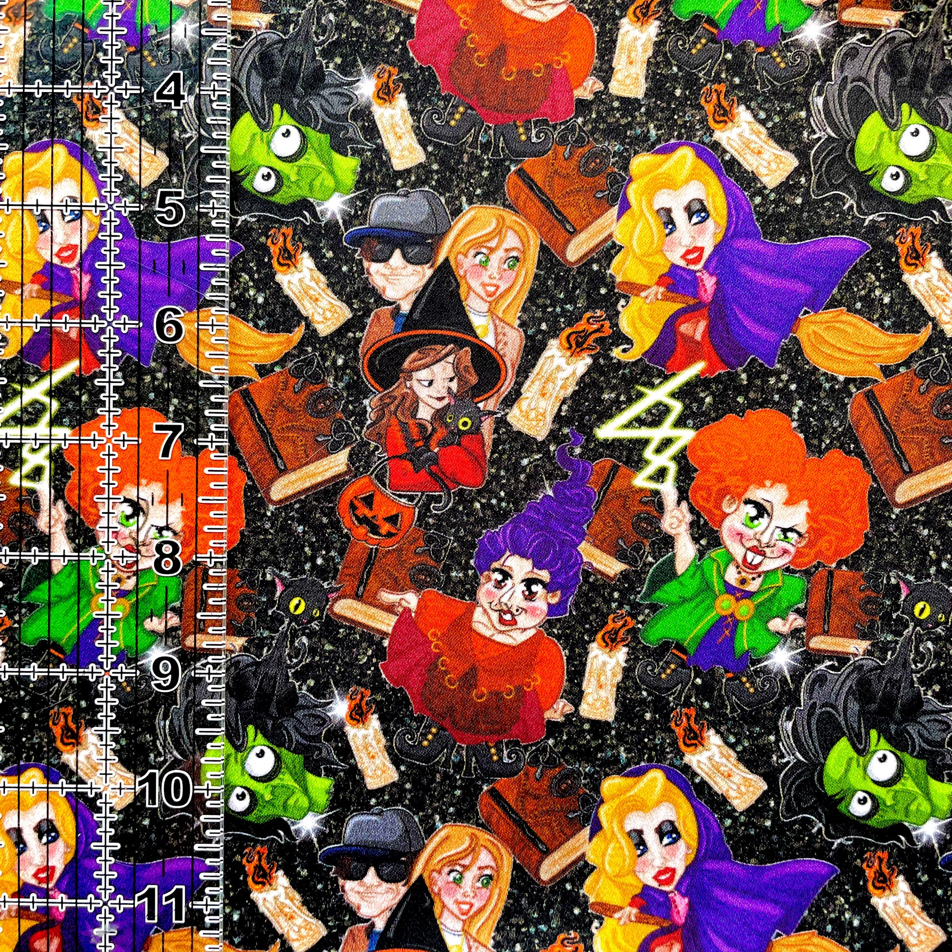 9x14 Tumbler Cut, Custom Fabric, CW Cotton Woven, High Quality, Mask Cut, Tumbler Fabric, Witch, Hocus, Spell, Pocus, Halloween, Toon on Black, Precut