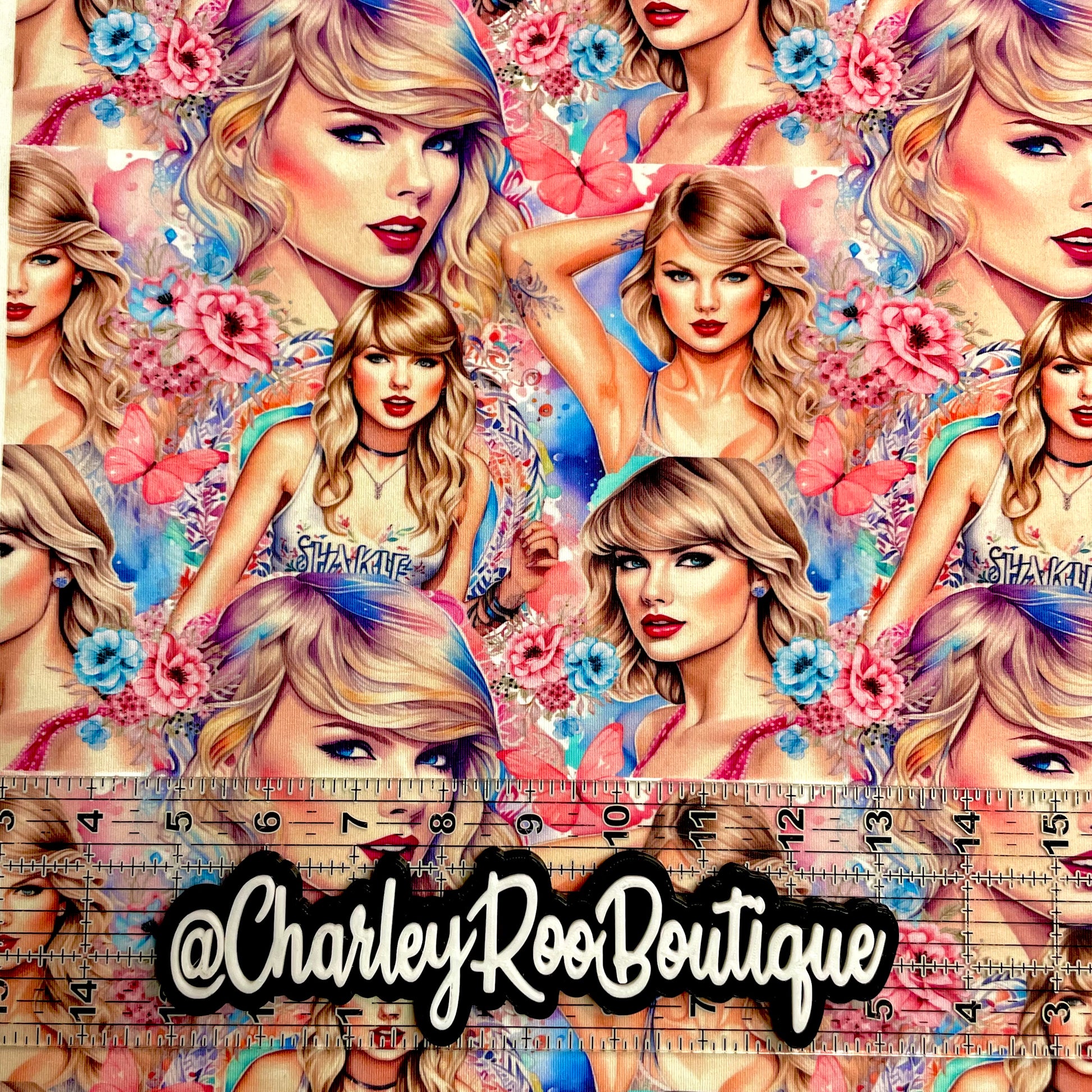 Exclusive, 9x14 Tumbler Cut, Custom Fabric, CottonSpandex, High Quality, Tumbler Fabric, Swiftie, Pink & Blue Floral TSwift, Larger Scale