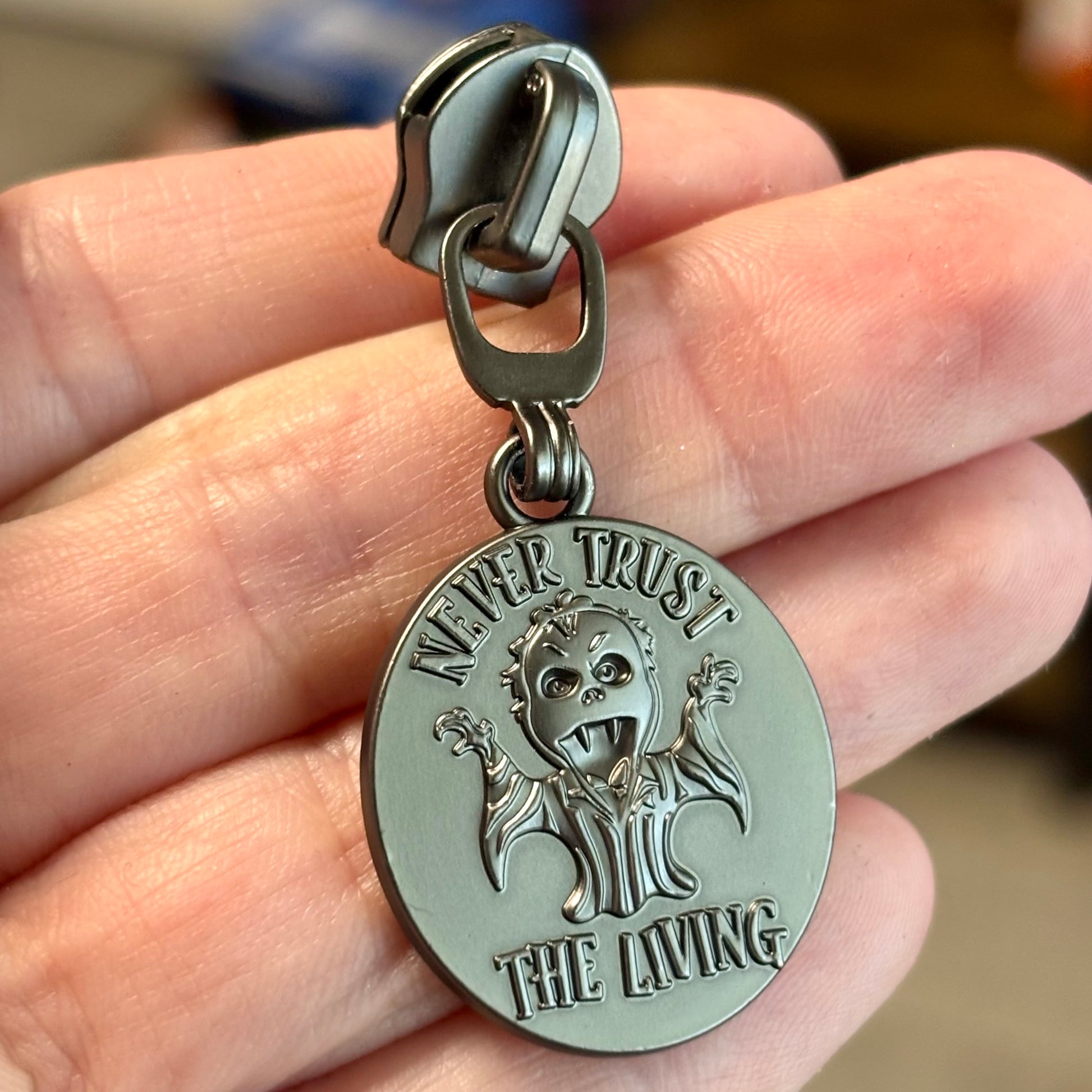 Zipper Pull, Beetle Guy, Never Trust the Living, Matte Gunmetal